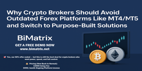 If you're planning to offer crypto trading, using forex-centric platforms like MetaTrader 4 (MT4) or MetaTrader 5 (MT5) can hold you back.